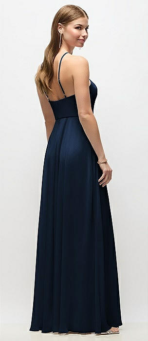 High-Neck Halter Chiffon Maxi Dress with Adjustable Spaghetti Straps in midnight navy