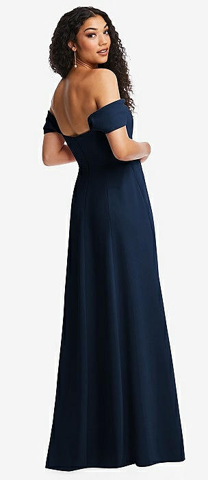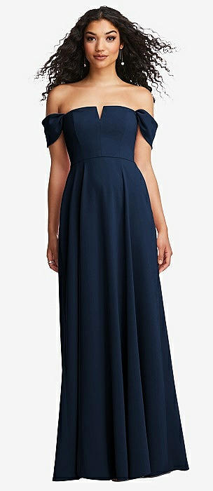 Off-the-Shoulder Pleated Cap Sleeve A-line Maxi Dress in midnight navy