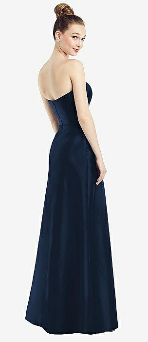 Strapless Notch Satin Gown with Pockets in midnight navy