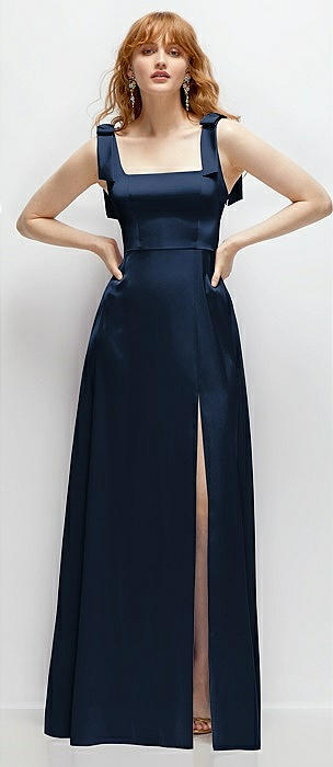 Square Neck Fluid Satin Maxi Dress with Bow Straps in midnight navy