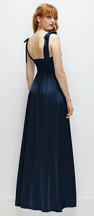 Flat Tie-Shoulder Empire Waist Maxi Dress with Front Slit in midnight navy