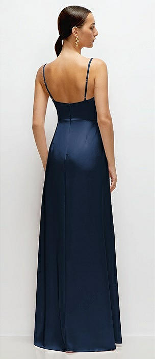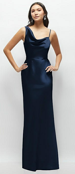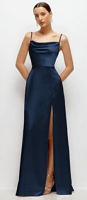 Cowl Neck Satin Maxi Dress with Adjustable Spaghetti Straps in midnight navy