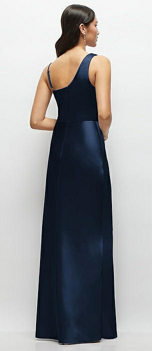 One-Shoulder Draped Cowl A-Line Satin Maxi Dress in midnight navy