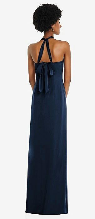 Draped Satin Grecian Column Gown with Convertible Straps in midnight navy
