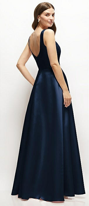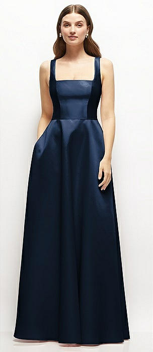 Square-Neck Satin Maxi Dress with Full Skirt in midnight navy