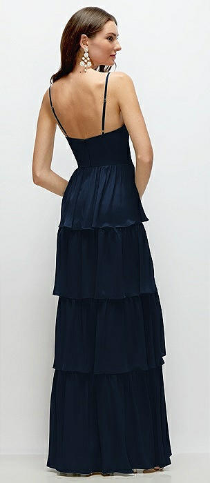 Bustier-Style Chiffon Tiered Ruffle Maxi Dress with Adjustable Straps in midnight navy