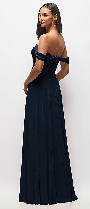 Off-the-Shoulder Draped Chiffon Maxi Dress in midnight navy