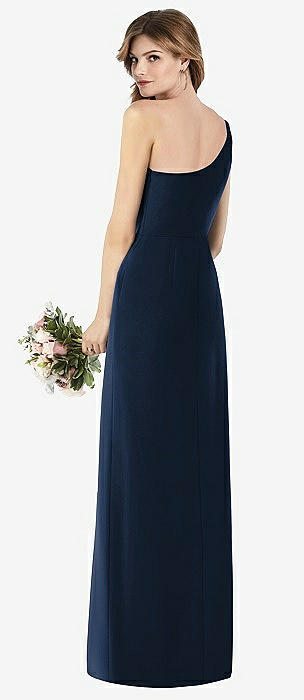 One-Shoulder Crepe Trumpet Gown with Front Slit in midnight navy