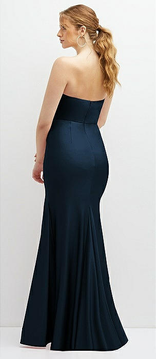 Strapless Basque-Neck Draped Stretch Satin Mermaid Dress with Horsehair Hem in midnight navy