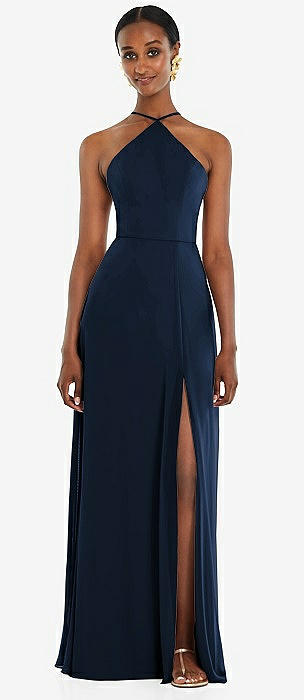 Diamond Halter Maxi Dress with Adjustable Straps in midnight navy