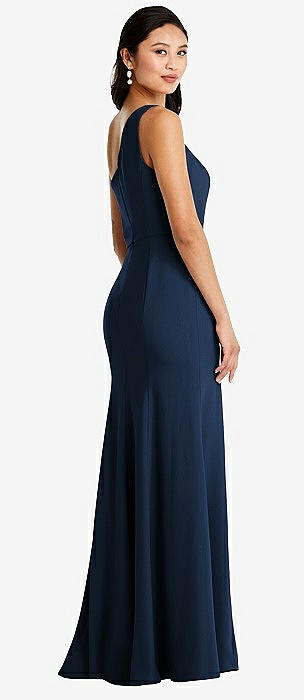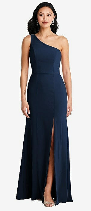 One-Shoulder Bias-Cuff Stretch Satin Mermaid Dress with Slight Train in midnight navy