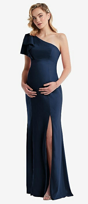 One-Shoulder Ruffle Sleeve Maternity Trumpet Gown in midnight navy