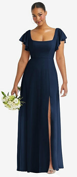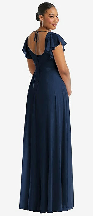Flutter Sleeve Scoop Open-Back Chiffon Maxi Dress in midnight navy