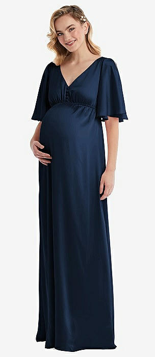 Flat Tie-Shoulder Empire Waist Maternity Dress in midnight navy
