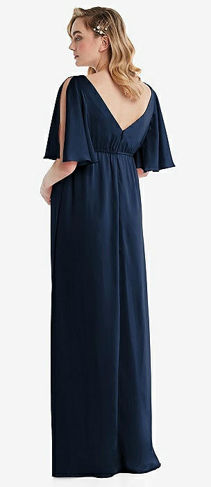 Flat Tie-Shoulder Empire Waist Maxi Dress with Front Slit in midnight navy