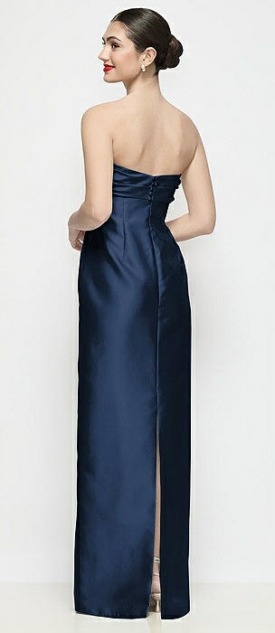 Strapless Cuff Neck Satin Maxi Dress with Column Skirt in midnight navy
