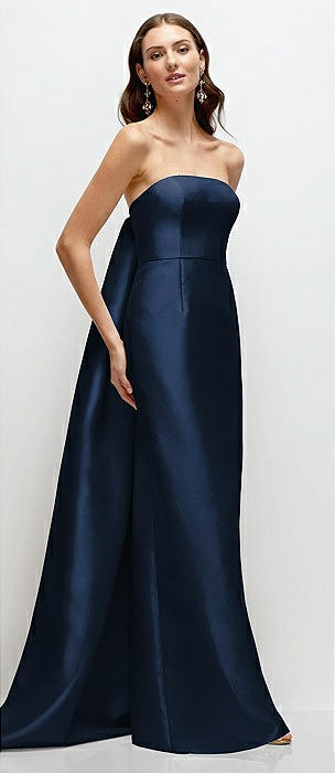 Strapless Satin Column Dress with Removeable Watteau Train in midnight navy