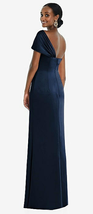 Twist Cuff One-Shoulder Princess Line Trumpet Gown in midnight navy