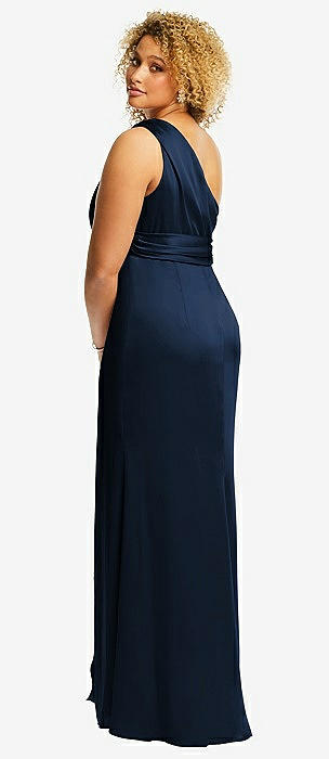 One-Shoulder Draped Twist Empire Waist Trumpet Gown in midnight navy