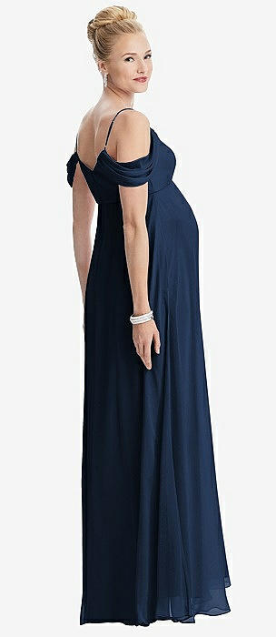 Draped Cold-Shoulder Chiffon Maternity Dress in midnight navy