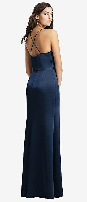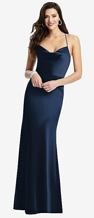 Cowl-Neck Criss Cross Back Slip Dress in midnight navy