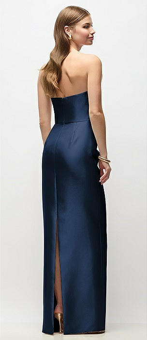 Strapless Notch Satin Gown with Pockets in midnight navy