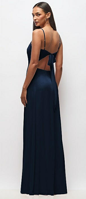 Plunge Halter Open-Back Maxi Bias Dress with Low Tie Back in midnight navy