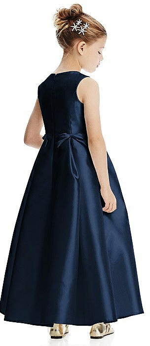 Princess Line Satin Twill Flower Girl Dress with Bows in midnight navy