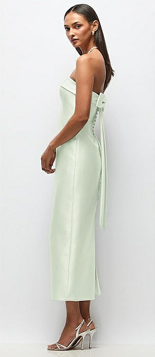 Strapless Cuff Satin Midi Dress with Column Skirt & Back Bow in mint green
