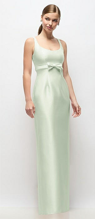 Scoop Neck Satin Column Maxi Dress with Bow at Empire Waist in mint green