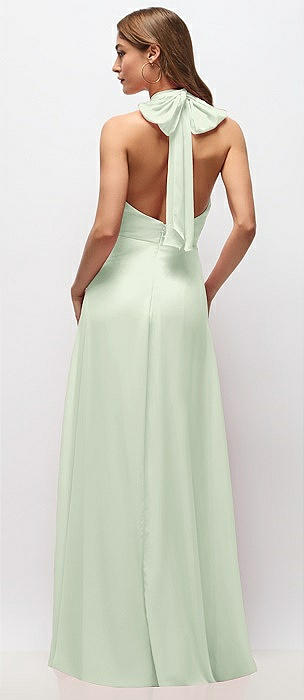 High-Neck Halter Open-Back Satin Trumpet Dress in mint green