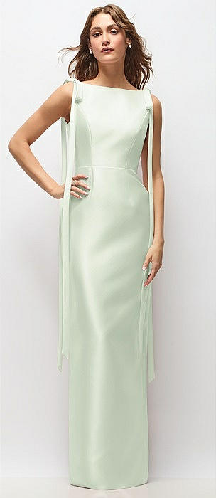 Bateau Neck Satin Column Maxi Dress with Exaggerated Tail Bow Straps in mint green