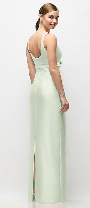 Scoop Neck Satin Column Maxi Dress with Bow at Empire Waist in mint green