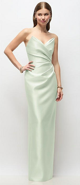 Strapless Cat-Eye Draped Bodice Satin Tumpet Dress in mint green