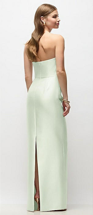 Strapless Draped Bodice Column Dress with Oversized Bow in mint green