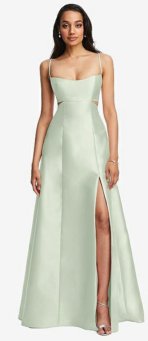 Open Neckline Cutout Satin Twill A-Line Gown with Pockets in mint green