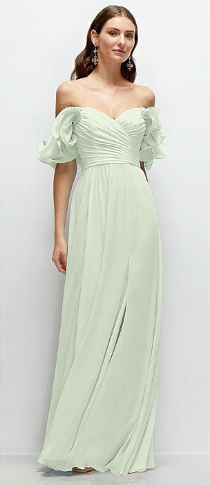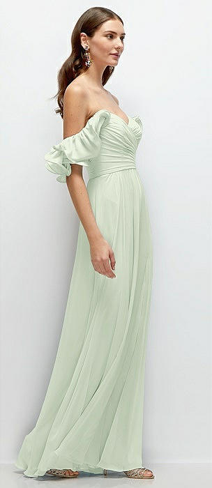 Off-the-Shoulder Draped Chiffon Maxi Dress in mint green
