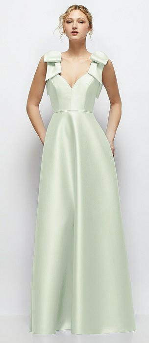 Deep V-Neck Satin Ball Gown with Shoulder Bows in mint green