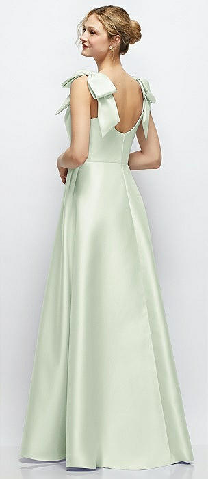 Bow-Shoulder Satin Maxi Dress with Asymmetrical Tiered Skirt in mint green