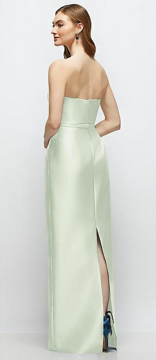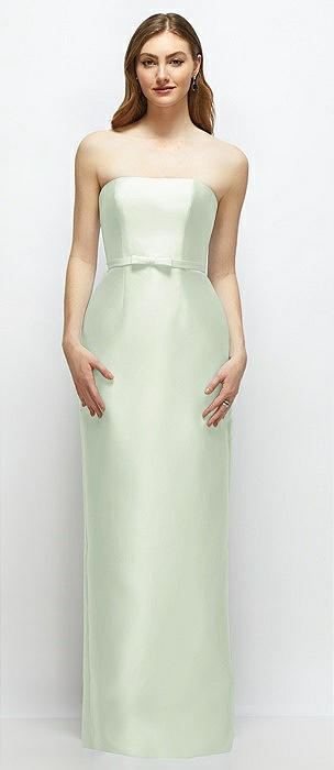 Strapless Satin Column Dress with Bow-Trimmed Skinny Belt in mint green