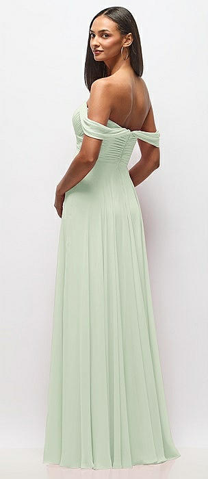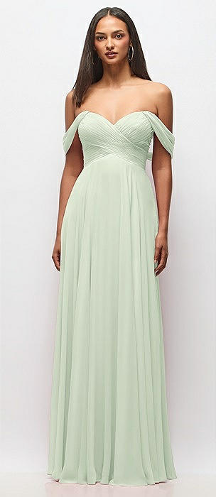 Off-the-Shoulder Draped Chiffon Maxi Dress in mint green