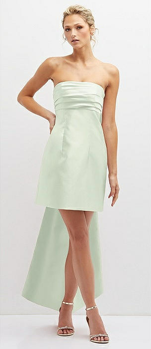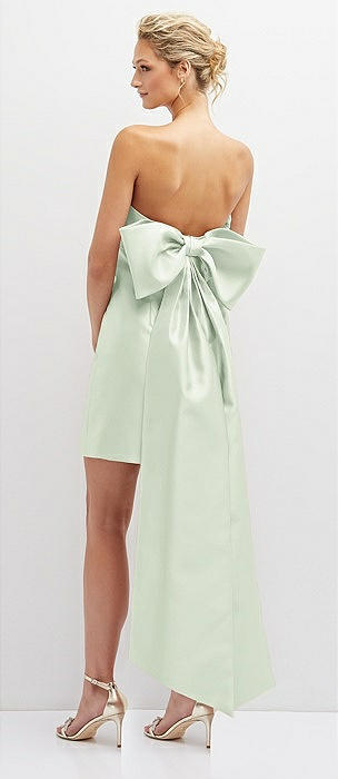 Strapless Satin Column Mini Dress with Oversized Bow in mint green