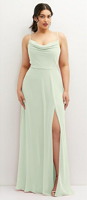 Soft Cowl-Neck A-Line Maxi Dress with Adjustable Straps in mint green