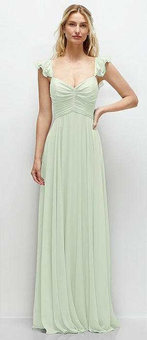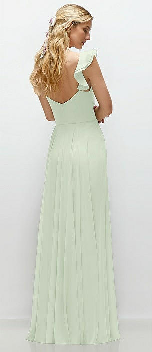 Convertible Ruffle Strap Chiffon Maxi Dress with Full Circle Skirt in mint green