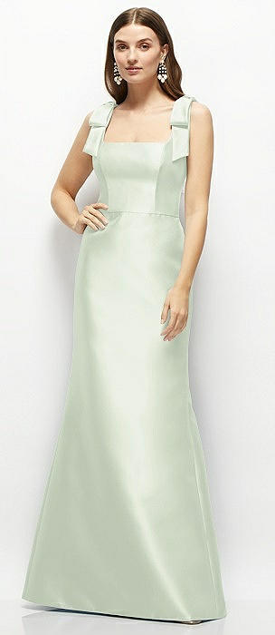 Satin Fit and Flare Maxi Dress with Shoulder Bows in mint green