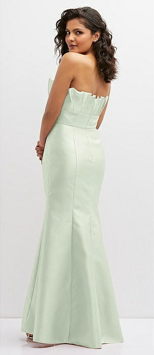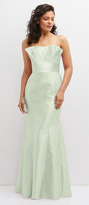 Strapless A-line Satin Gown with Modern Bow Detail in mint green