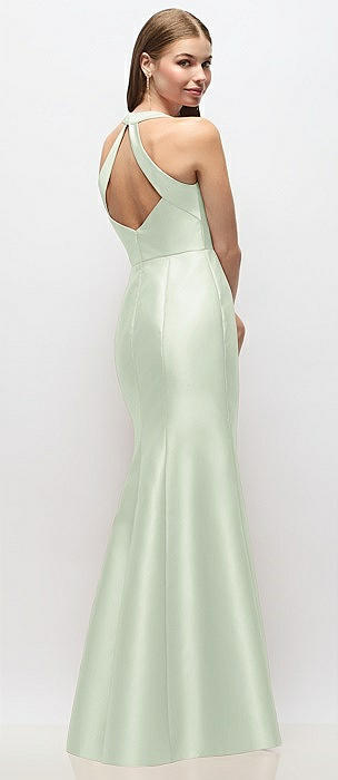 Sleeveless Open-Back Satin A-Line Dress in mint green
