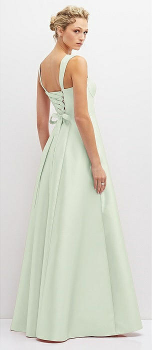 Lace-Up Back Bustier Satin Dress with Full Skirt and Pockets in mint green
