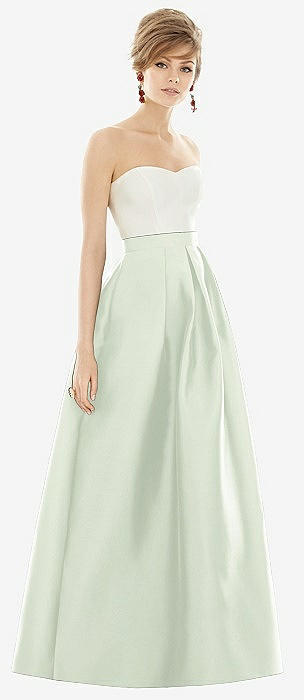 Strapless Pleated Skirt Maxi Dress with Pockets in mint green