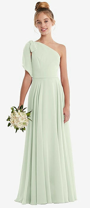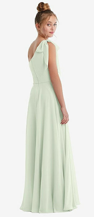 One-Shoulder Scarf Bow Chiffon Junior Bridesmaid Dress in mint green